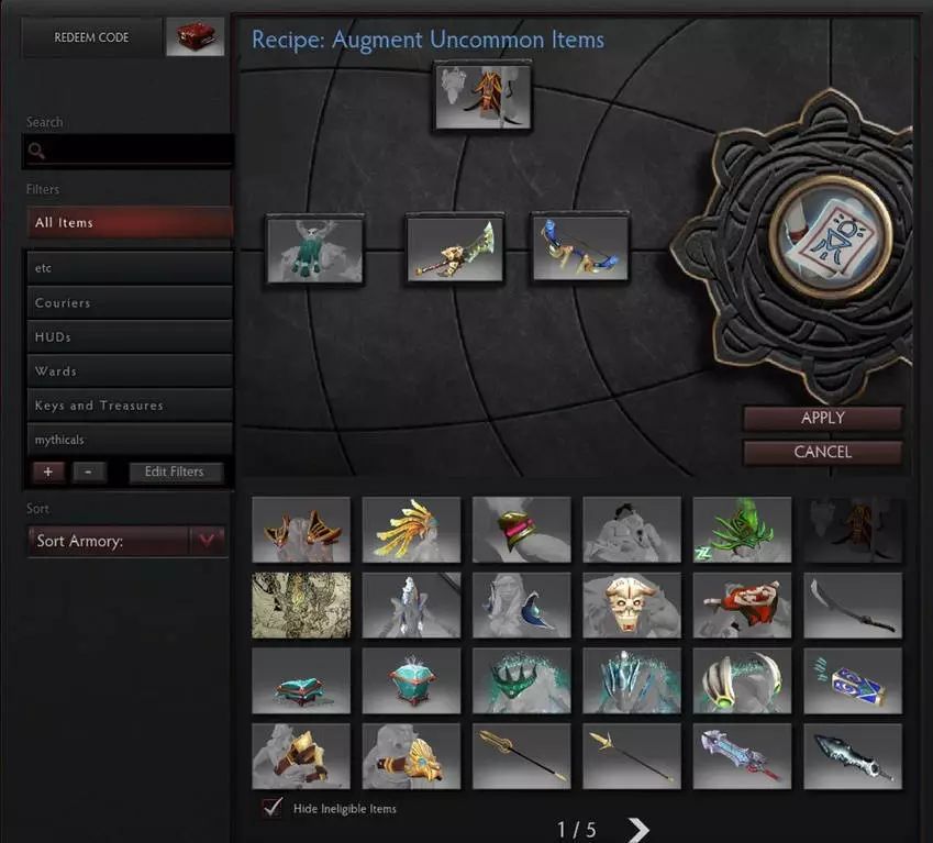 没错,就是曾经可以把低级饰品融合成高级饰品的功能,现在dota2饰品越出越多,真的库存好多垃圾,不知道你们认为该不该推出这个功能呢?