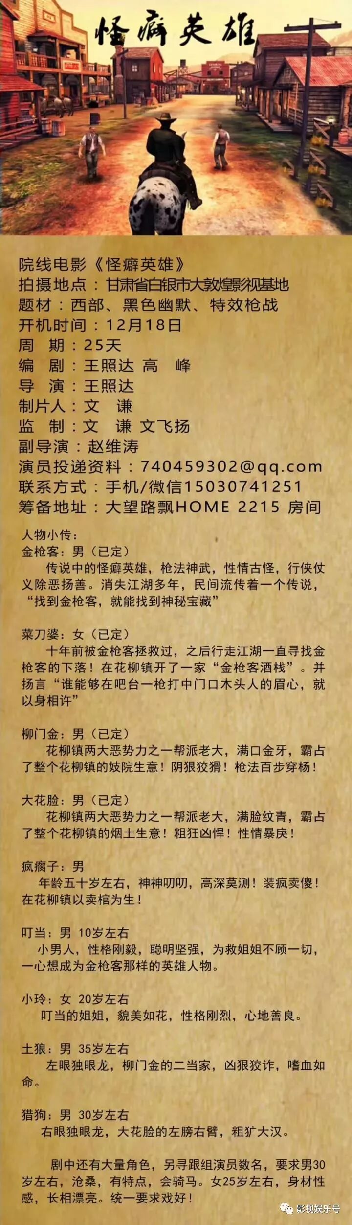 剧中角色部分未定,望各大经纪及个体演员前来投递资料。