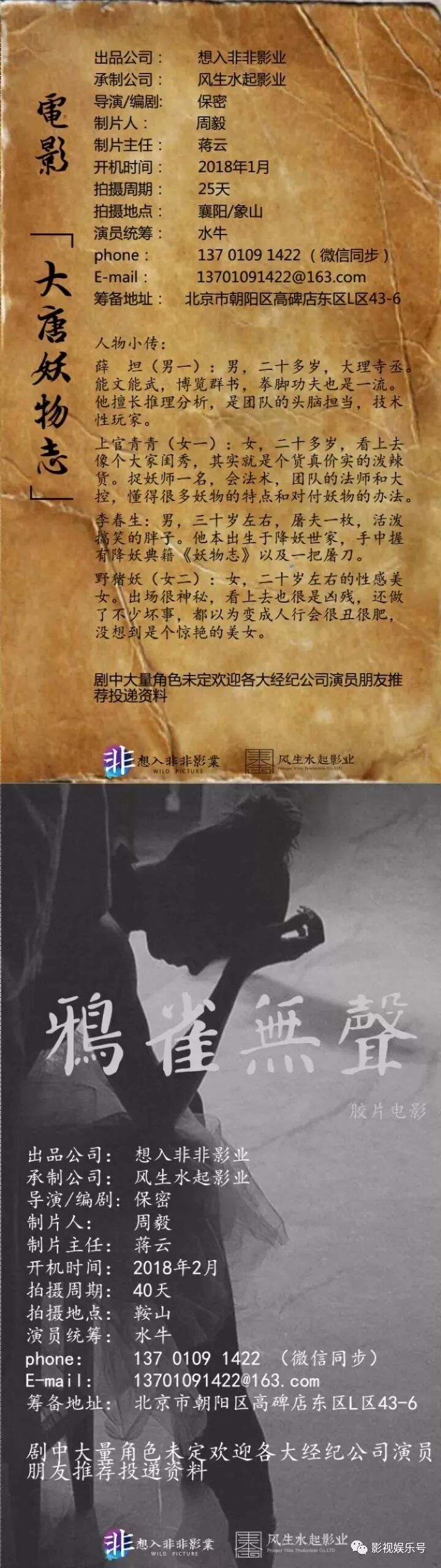 注:电影《大唐妖物志》,胶片文艺片同时前期筹备,欢迎大家多多支持,辛苦大家送纸版资料过来,天冷注意保暖,