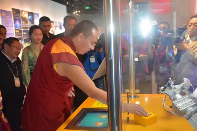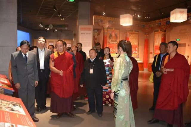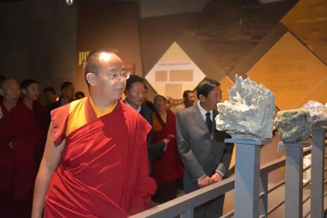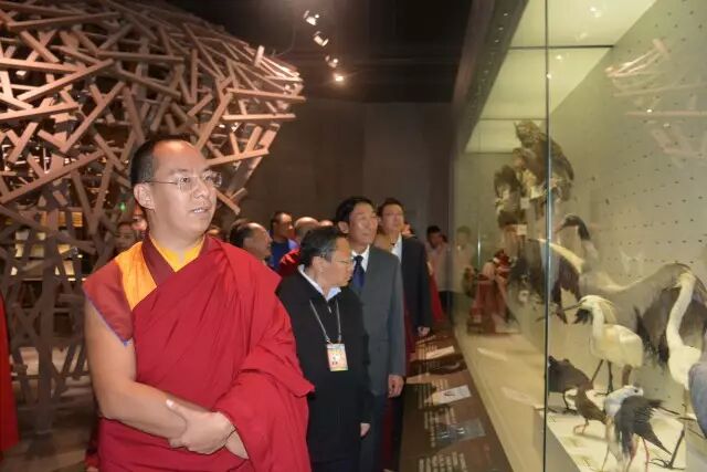 2017年9月5日上午,全国政协常委、中国佛教协会副会长、第十一世班禅额尔德尼·确吉杰布一行莅临西藏自然科学博物馆参观视察指导工作。自治区党委常委、拉萨市委书记白玛旺堆,自治区政府党组副书记、政府顾问、区民宗委党组书记格桑次仁陪同视察。自治区科技厅党组副书记、厅长赤列旺杰,党组成员、副厅长王俊杰,西藏自然科学博物馆副馆长洛桑俊美陪同参观。