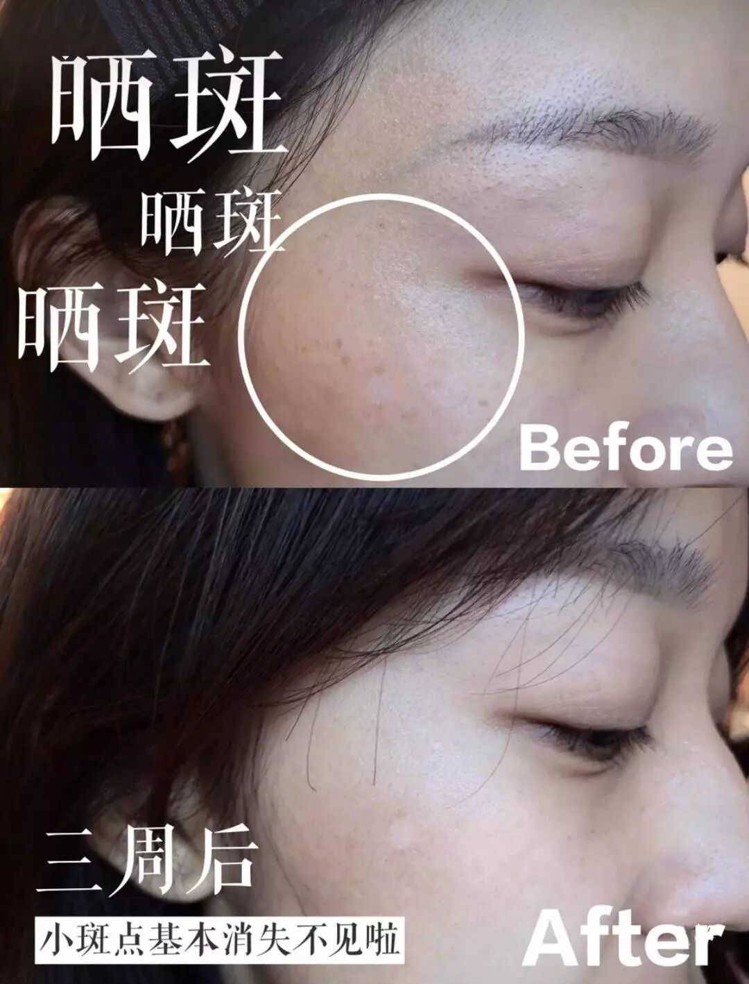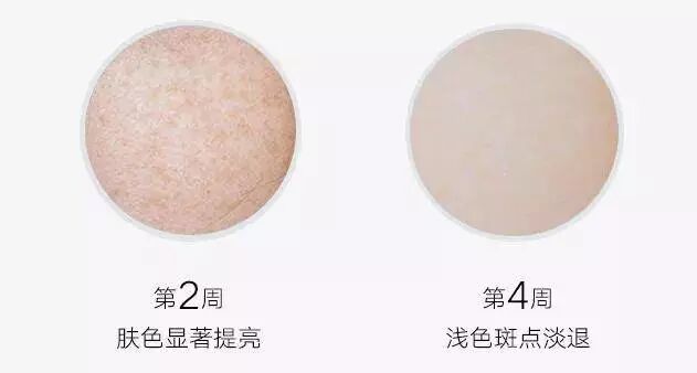 2周后,可以发现肤色会明显提亮;4周后,细小斑点开始有变淡。一般一个疗程后就可以看到效果了,当然,每个人的肤质和情况不一样,时间也会有差别。