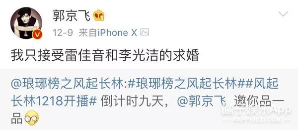 郭京飞说自己只接受雷佳音和李光洁的求婚