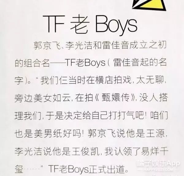 大家都知道今年娱乐圈年事最高的中年男子天团TF老boys吧:大哥郭京飞、老二李光洁、老幺雷佳音。