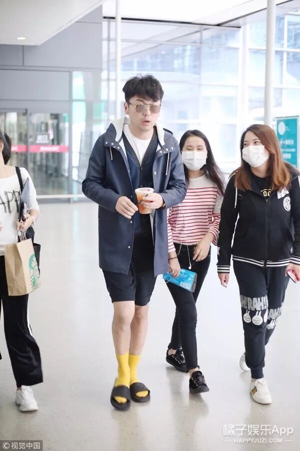 如果你们记得雷佳音这张短裤衩、黑色澡堂拖鞋和黄色长袜的机场泥石流穿搭的话▼