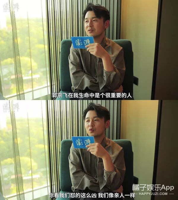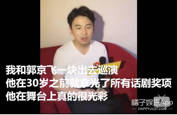 两个人一块出去巡演,郭京飞是男主角,他是男二号,他不容易认真夸起了郭京飞在话剧舞台上的演技和能力。