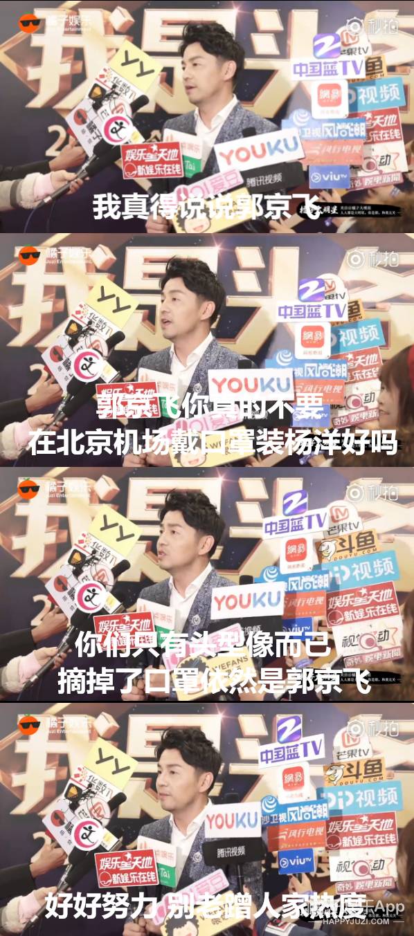 “郭京飞你真的不要在北京机场戴口罩装杨洋好吗 你们只有头型像而已 好好努力别老蹭人家热度”