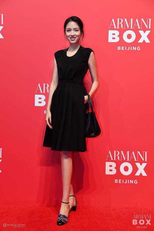 接着,我看到了“世姐”张梓琳,随便往那一站就腿长逆天。她身着Giorgio Armani2017年秋冬系列黑色羊毛材质肩部及腰部均饰有水晶短款连衣裙,搭配Giorgio Armani Le Jeu 系列手袋,显得格外迷人。