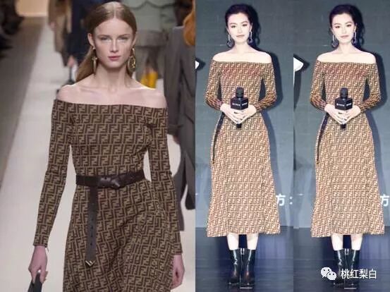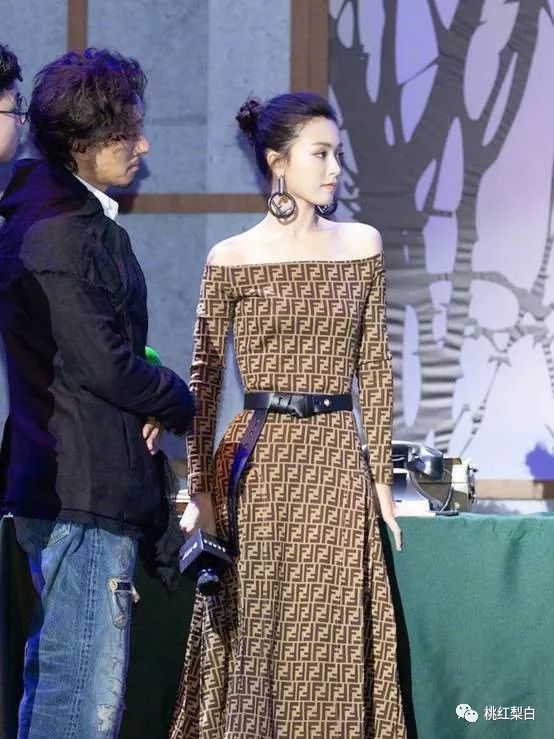 一直觉得她的长相和身材,真的很有气质,Fendi的这条露肩字母logo连身裙,被文咏珊这种身形清瘦高挑的类型穿起来,真的相当有存在感,裙子已经足够亮眼,妆发就尽量清爽简洁,整体真的挑不出毛病。