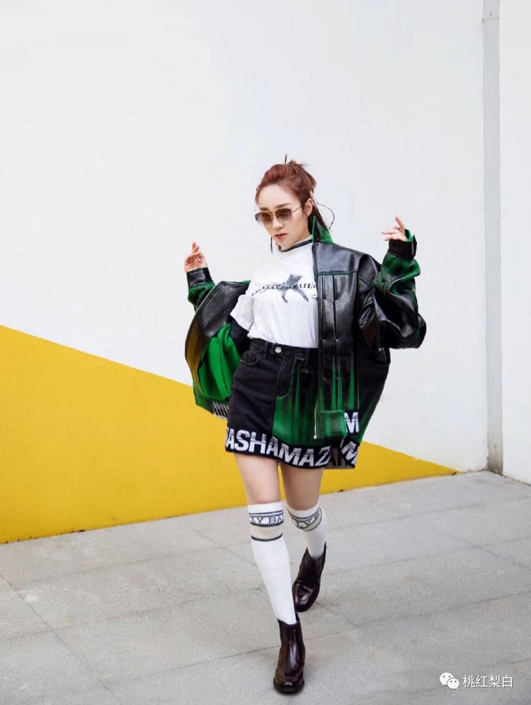 说实话,第一眼看到这个街拍,我脑海里过滤了一圈女明星,硬是没想到是谁,好好的青春少女,非要凹这种油腻的时髦感,从墨镜到皮衣都在诉说着“不搭”。