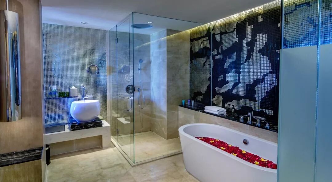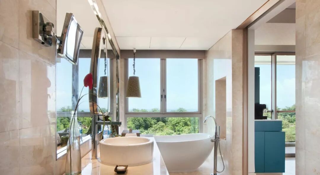 70平方米的泳池连通套房,设计精致优雅,坐拥热带庭院美景并与半私密泳池直接相连。这里是追求完美假期的蜜月夫妇和游客的不二之选,现代风格的室内装饰与充满自然风情的定制艺术品彰显现代与自然的平衡之美。宾客可在大理石浴室中享受放松时刻。
