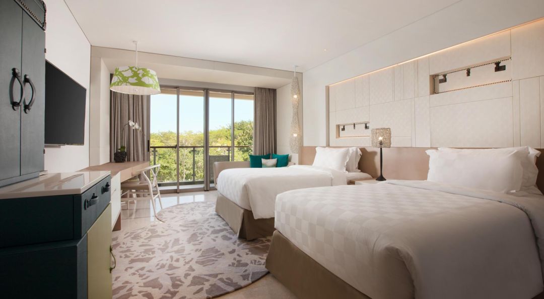 每间金巴兰套房均为70平方米,拥有私人观景阳台,可欣赏开阔葱郁的森林、热带花园和波光泳池美景。这里是追求舒适宽敞空间的家庭和情侣度假的完美之选。