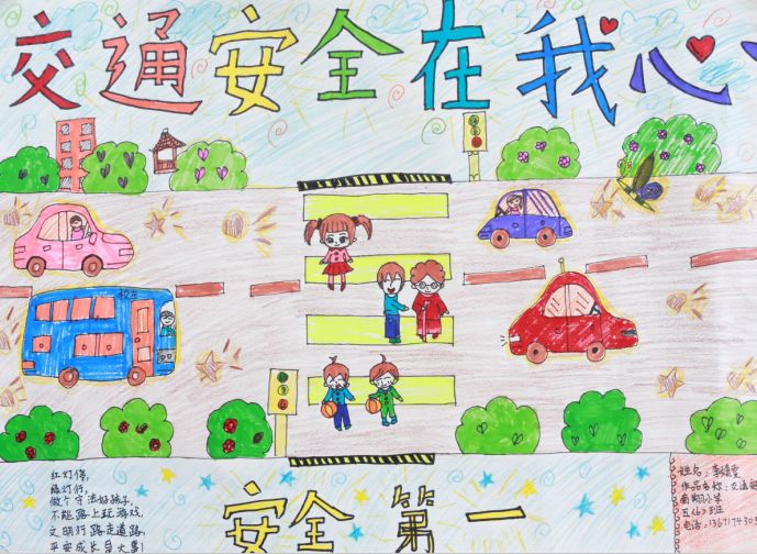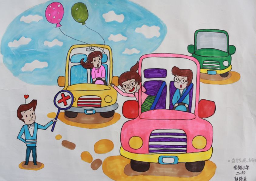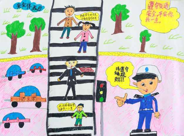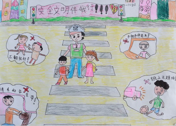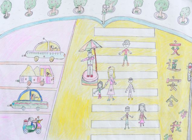 为帮助广大少年儿童培养良好的行路习惯,提高交通安全的自我保护意识,树立遵守交通规则的观念,在第七个全国交通安全日到来之际,南翔小学在全校学生中开展了交通安全绘画比赛。