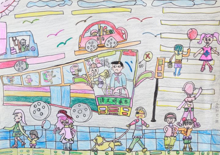 自11月2日活动开展以来,学生们踊跃参赛,用画笔描画出一幅幅交通安全绘画作品。作品内容丰富多彩,从儿童的视角诠释了对交规的认识与理解,融入了对当前交通安全的深深思考。如:自觉遵守信号灯、马路上不可以玩耍、未满12周岁不能骑自行车上路、安全乘坐公交车、不做低头族等。这些交通安全知识在学生的画笔下显得生动形象,抒发了珍爱生命、安全出行的美好愿望。