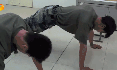 班长反复强调这是庄严而神圣的场合,于是嬉笑二人组被班长罚按特种部队的方式做俯卧撑,让我们看到了什么叫俯卧撑难兄难弟。难怪李锐在发布会上感谢孙杨和黄子韬二人帮自己分担,因为惩罚的都是他们两个。