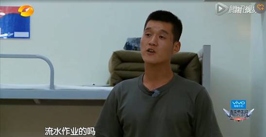 回到宿舍后班长在教男兵们念宣誓词,当班长问道:“准备好宣誓吗?”一班依次回答:“准备好了!”被班长吐槽他们的回答像流水作业。