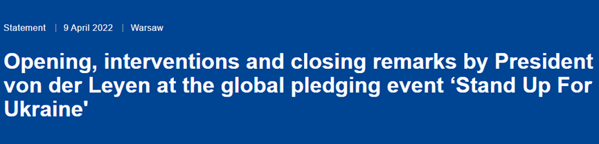 Opening remarks by President von der Leyen at the global pledging event ‘Stand Up For Ukraine'
