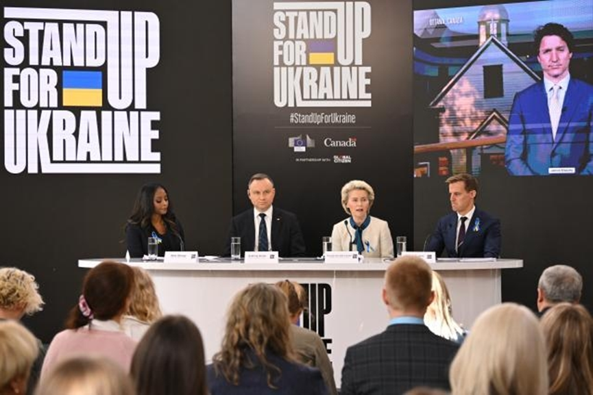 In recognition of Poland's essential role in supporting refugees fleeing the invasion of Ukraine, the Stand Up For Ukraine pledging event took place in Warsaw, with the participation of President Duda.