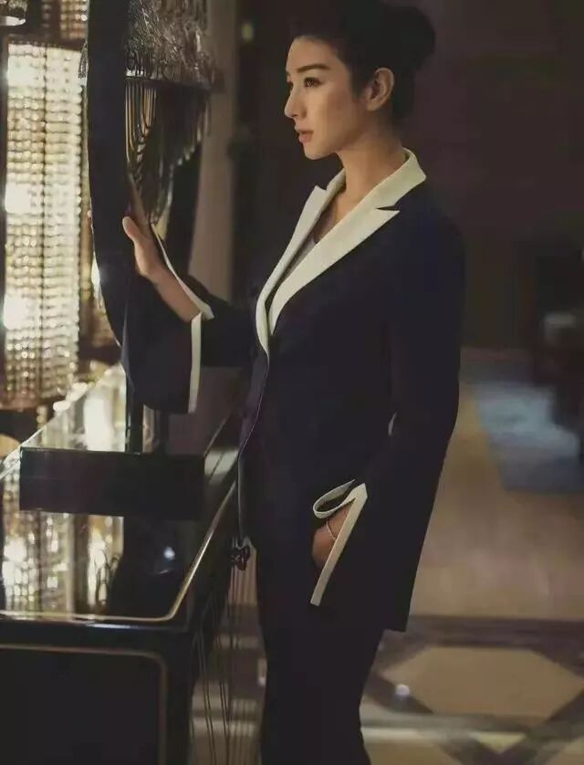 黄奕当天盘着一头利落的头发,整个人大方得体。穿着一整套西装的她神清气爽、气场十足。