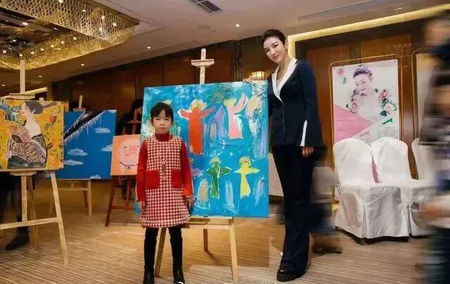 黄奕和女儿站在画作前合照,从照片可以看出黄芊玲似乎高了不少,和妈妈站在一起颜值一点也不比妈妈低。黄芊玲穿的一身搭配也十分的不错,看来是妈妈为女儿精心搭配的。