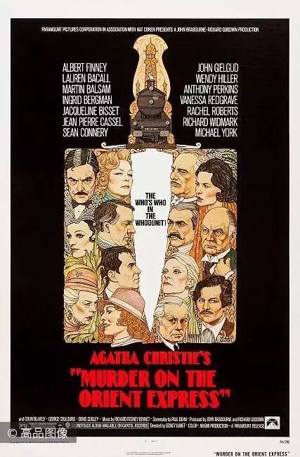 1974年11月24日上映的《东方快车谋杀案》由西德尼·吕美特执导,阿尔伯特·芬尼、劳伦·白考尔、马丁·鲍尔萨姆、英格丽·褒曼、杰奎琳·比塞特等主演。