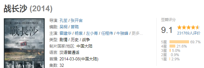 2014年开播的剧《战长沙》,突然被说:有人恶意打分!