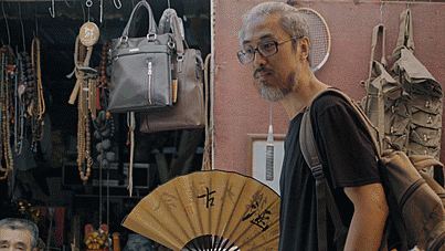 有着艺术家的束发,一架黑框眼镜,
