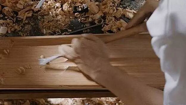 神情专注,刨子来来回回,