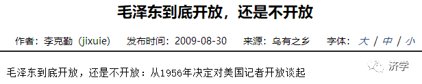 在毛主席视野里,开放只能是手段,不是目的,他在任何时候,在任何情况下,始终以民族大义为重,始终牢牢把握为人民服务这个宗旨,没有丝毫的偏离和疏忽或者松懈,所以他对于西方记者具有一种特殊的政治家魅力,他的主张,他的原则,他的理想,是那么坚定,而他处理具体事务,又是那么富有灵活性,连一贯叫嚣新闻自由的美国政府都在他面前显得僵化,你说毛泽东的新闻自由到什么地步?!