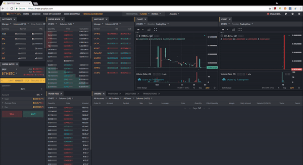 QRYPTOS数字货币交易平台已经在线了。我注册了一个账号,整个画面设计的很专业,虽然显示了众多的信息,但反应速度一点不慢。注册以后,顶层菜单里的QASH ICO就是用来购买代币的。提交按键现在是灰色的,就等11月6日开盘了。
