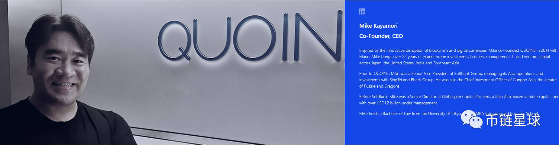 CEO叫Mike Kayamori。曾是日本软银的副总。日本软银就是孙正义的公司,雅虎和阿里巴巴的投资人,持股人和幕后老板。Mike本人有22年的投资,IT等方面的经验,从2014年起就开始带领团队开发虚拟货币交易平台了。