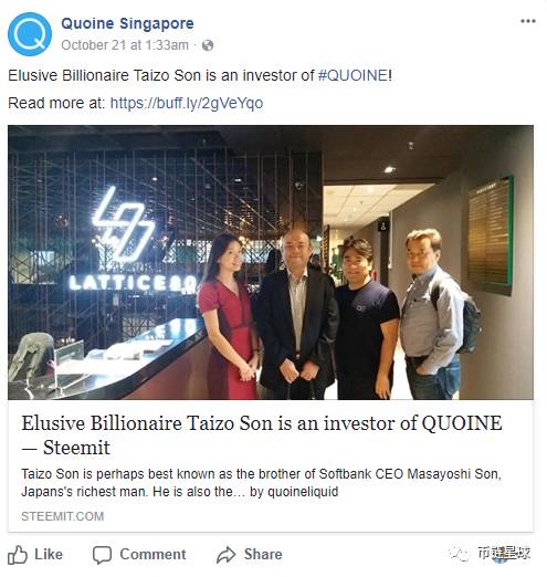 孙正义的弟弟就是Quoine公司的投资人,公司的脸书(Facebook)上就有孙正义的弟弟和公司CEO Mike的合影。