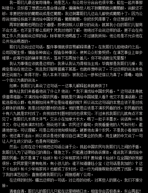 关于经纪人口中所说的“不演戏给农民看”是真相还是抹黑报复我们不清楚,不过确实导致那段时间彭于晏口碑下降。后来他的好兄弟胡歌还发博客为他解释过!