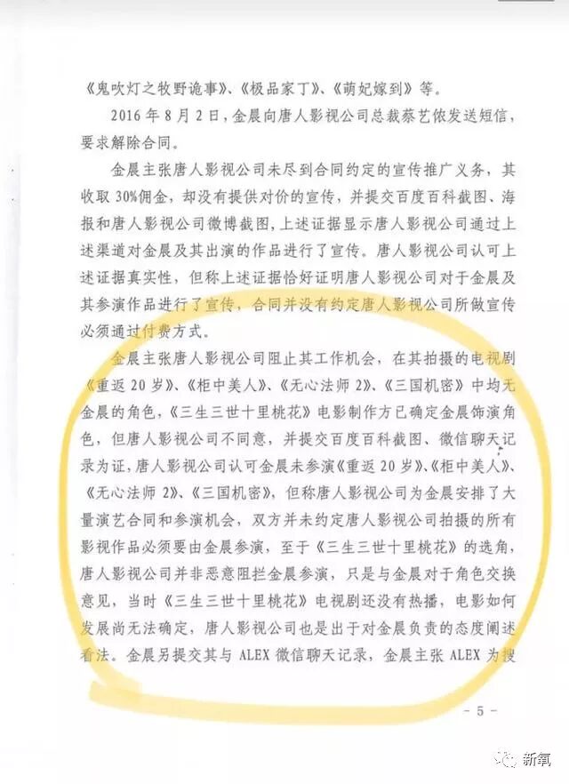 去翻了一下判决书,金晨对唐人在三个方面的做法不满意:1.公司未履行承诺让她出演无心法师等四部剧,且阻挠她出演电影版三生三世。2.指责唐人阻挠她工作。不让她参加搜狐盛典,她靠自己努力去了。3.唐人没有为她付出等值报酬的宣传。(只截了部分图)