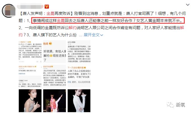 但是相比争论唐人资源或者金晨是不是有契约精神,网友更担心的是以后金晨还要为唐人工作很长一段时间,经过这次官司之后双方还能友好合作么?会不会使出“拖”字诀拖垮她。