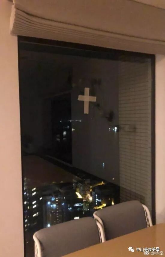 阿姨只是用胶带粘了一个小小的十字在窗户上。