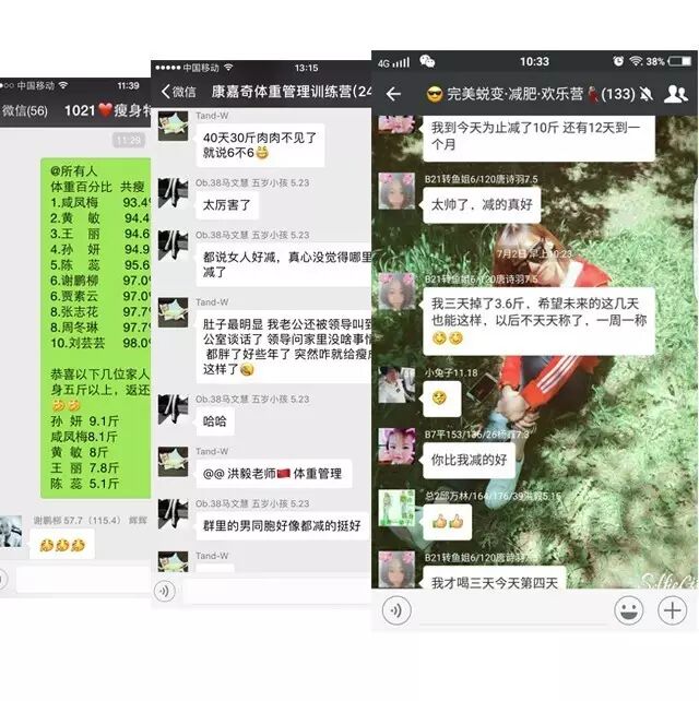 光有专业的指导还不够,减肥的胖友们往往需要互相激励,李文的教练团队专门给这些客户建好了微信群,让他们能够互相见证,互相鼓励,增强信心。