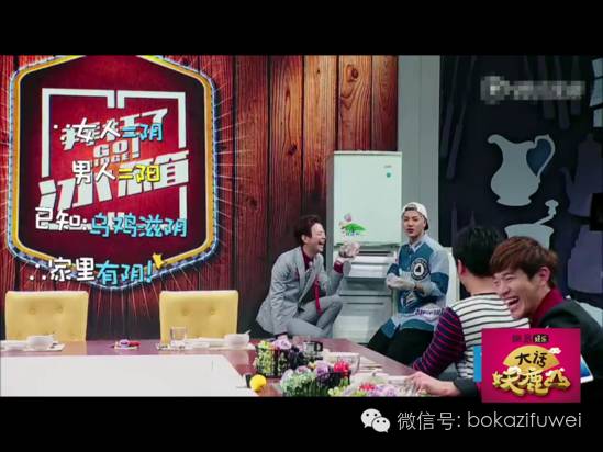 节目一开始就提到“伟哥”话题。何炅在介绍冰箱家族的厨师们时,王嘉尔把姚伟涛亲切地称呼为“伟哥”,立刻得到了何老师的谆谆教导:“伟哥是一种药”。