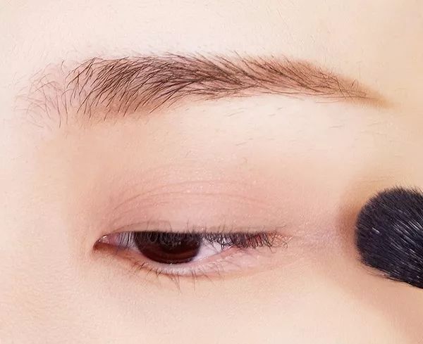 首先使用眼影刷蘸取裸粉色眼影,为整个眼皮打底。