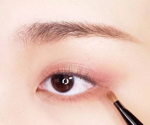 选择一把干净的眼影刷,在眼影边缘晕染自然,可以再蘸取一些粉色眼影,在眼头和眼尾处加深,制造深邃效果。