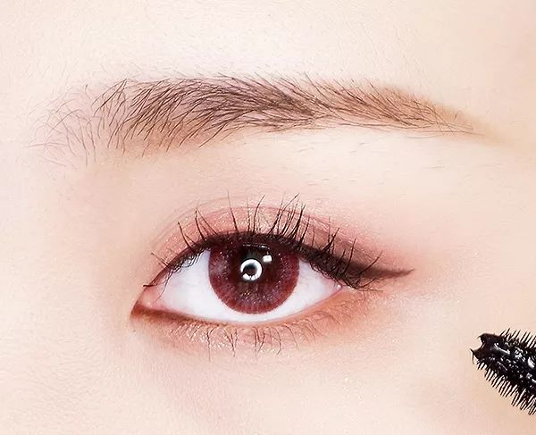 使用棕色眼线笔在睫毛根部描绘一根眼线,眼尾可稍稍上扬拉长。