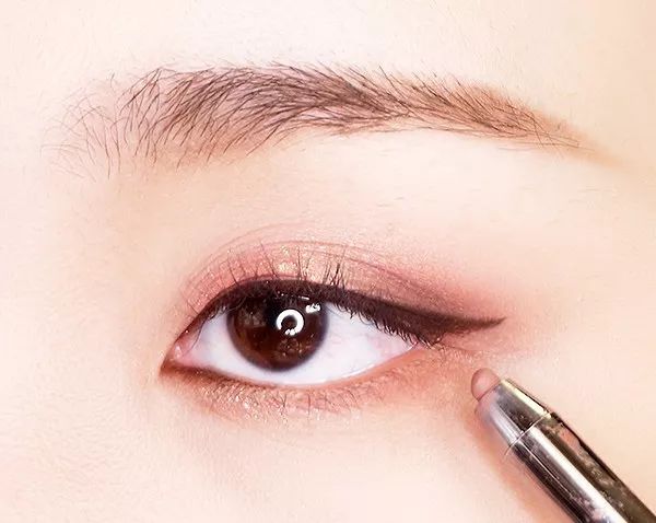 为了和上眼线呼应,下眼线位置可以用浅棕色眼影笔描绘,更加自然干净。