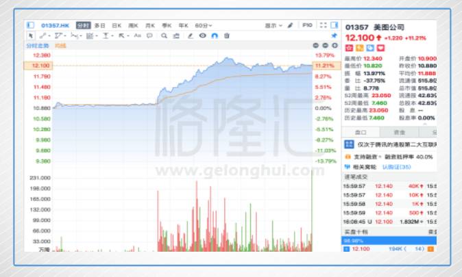 而就在周五众安在线连续第二天大涨20%之时,和众安类似的上一只还没有真正盈利就上市的美图公司(1357.HK),也盘中轻松大涨,收盘上涨11.21%——市场突然醒悟过来,如果众安能够享受如此待遇,美图或许更应该当仁不让。