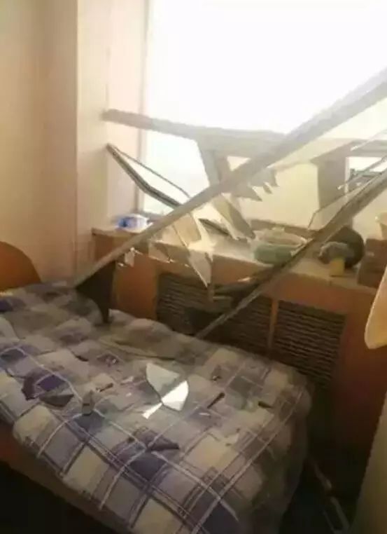 爆炸时幸好沒忘记念千手观音菩萨,与其说念不如说是拼命的喊,单位损毁严重,迎面的房间所有窗户全飞了,我所处值班休息室也不例外,玻璃片炸的到处都是,光一张单人床上就有大概几十块玻璃碎片,有的扎到被子上还站立着,蒙观音菩萨慈护,以不可思议的恰当时间正好被铁更衣柜档了一下,虽然如此但仍然被玻璃雨伤到了,不过只是点皮外伤。