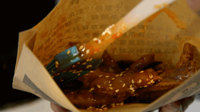 重庆火锅味鸡爪味道偏辣,用筷子轻轻一夹感觉就会把鸡肉从骨头上剔除下来!整个鸡爪看上去像泛着金光,看着就流口水!
