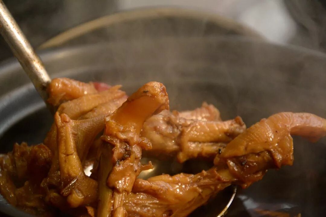 拿起锅盖的一瞬间,香味随着热气一起散发出来,站在很远的地方都能闻到,躺在锅里的鸡爪,随着滚烫的汤汁在锅里嘟嘟上顶!