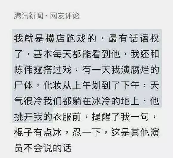横店的群演对陈伟霆的评价都很高,他并没有觉得群演地位低什么的,无论是粉丝,还是同事,甚至是陌生人都抱着一颗关怀的心。