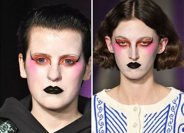 哑光巧克力色的唇妆和光泽感十足的大黑唇,尽管也是他的歪曲得意之作,看了也是想让人忍不住想效仿的