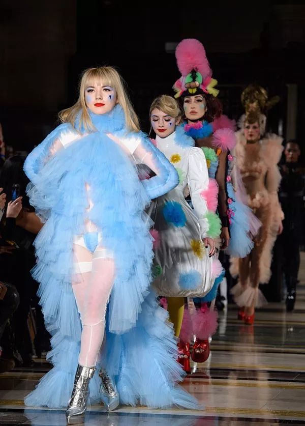 以大胆、前卫的设计风格著称的Pam Hogg,深受Rhianna(蕾哈娜), Kylie Minogue(凯莉·米洛), 摇滚女性Alison Mosshart、Siouxsie Sioux 等明星的喜爱,这次在伦敦时装周带来的服装,充满了游乐园般的色彩,还有一股复古的气息