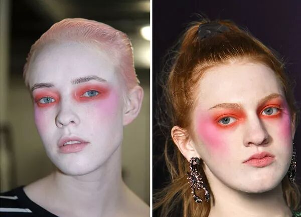 不过似乎妆容方面会更为大胆夸张一些。底妆选择了一丝不苟的瓷白,颇有日本艺伎的风格。眼妆则浓重地突出橘红色为主色调,腮红也不忘下重手,达到整体的平衡