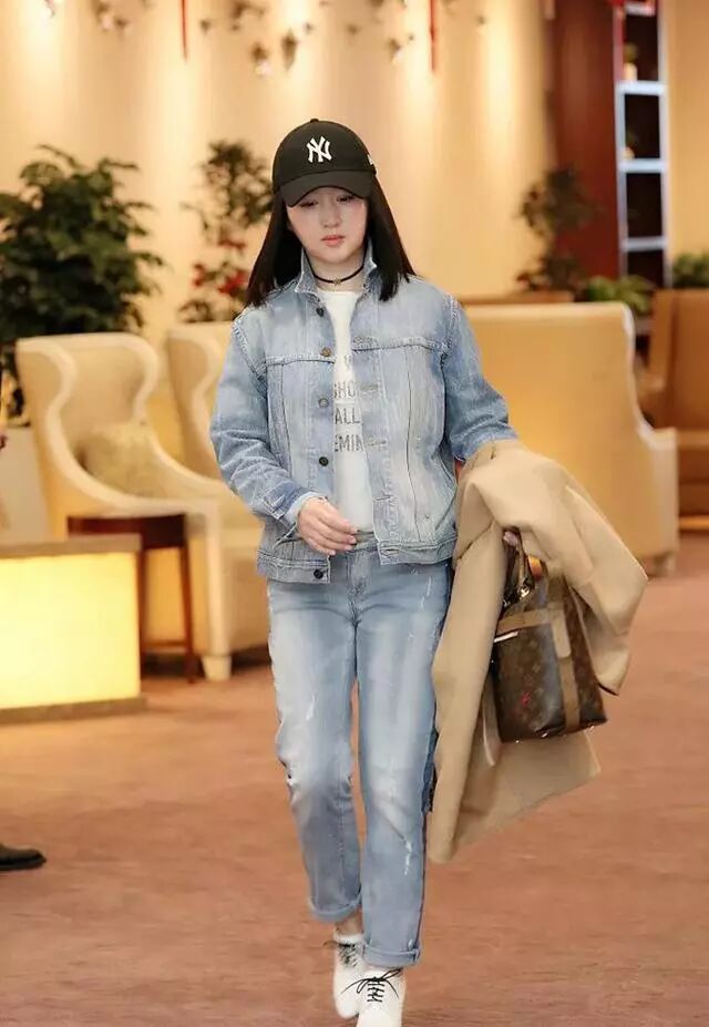 杨钰莹不仅长得显嫩,她的穿衣搭配也都比较比较显年轻,甚至可以称得上少女了。就像这套蓝色的牛仔装,又帅又美,很多年轻女孩们都爱这么穿。杨钰莹还巧妙地在脖子上配了一款黑色的chocker,少女感十足。